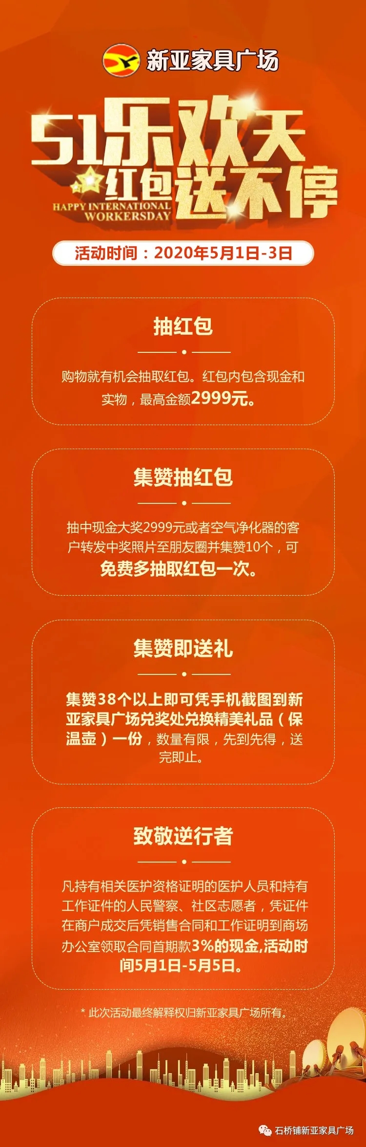 新亞家具廣場五一大促派送大禮了。